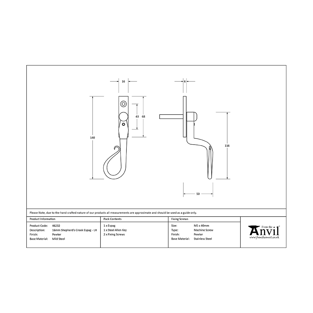 The shepherd’s crook is a delicate and traditional design that is only achievable through the skills of our master blacksmiths.