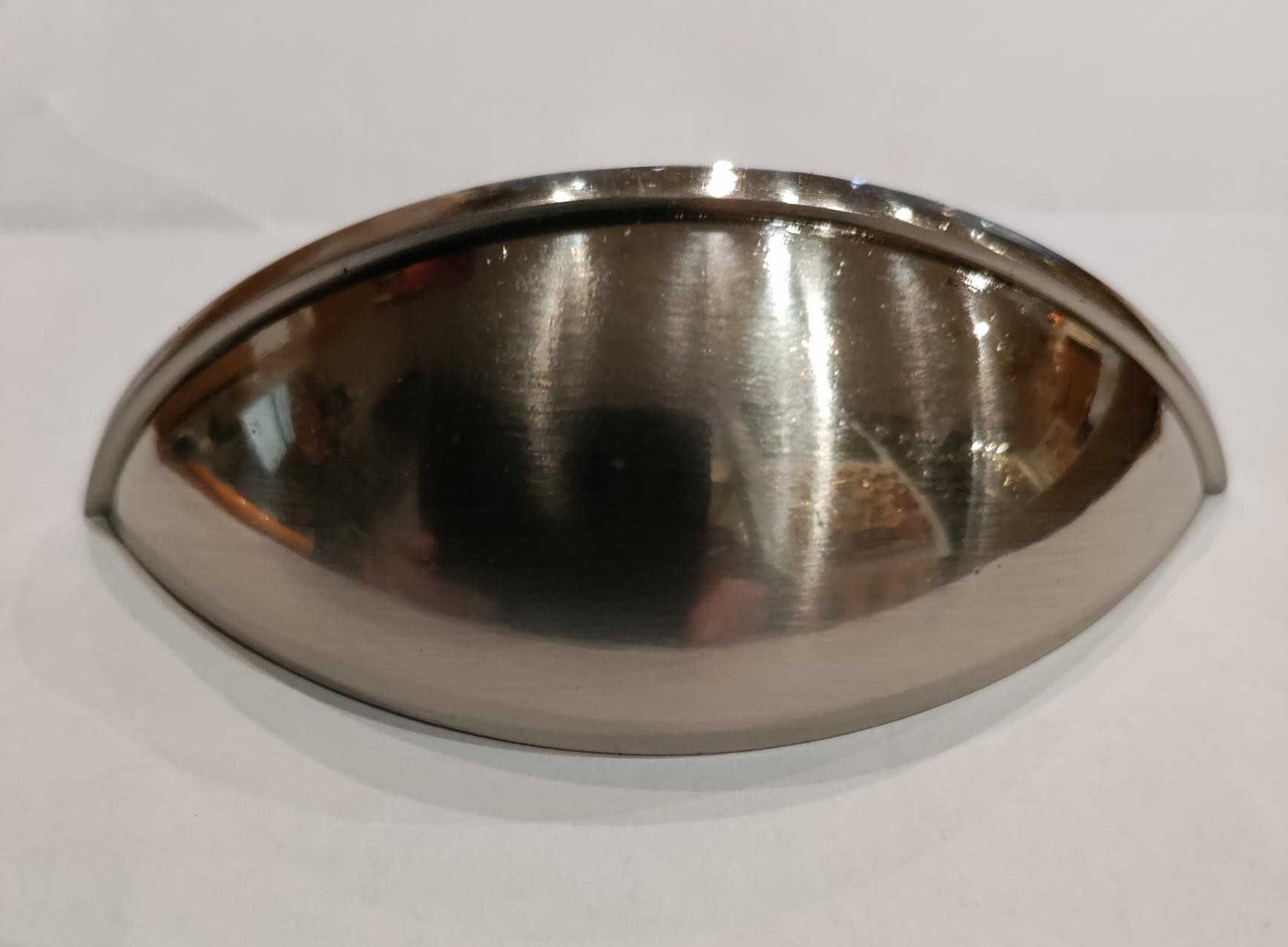 Our Cup Handle with 64mm hole centres, has a silky satin nickel finish that is a stylish addition to your cupboards.