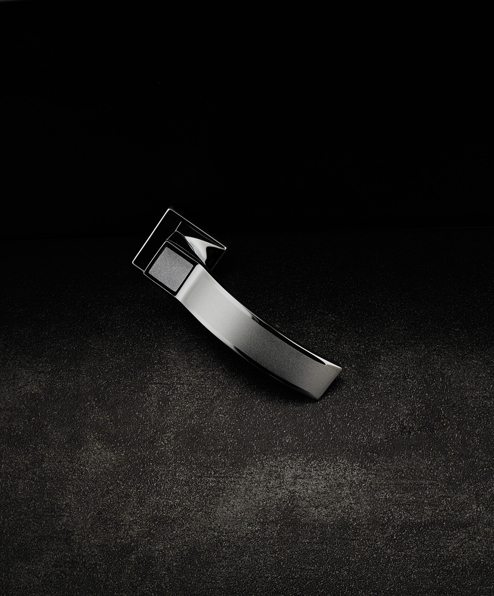 If admired from the front the forms are rigid and important, but if admired from a different ?point of view?, for example, from above, the silhouette alters radically and is softened thanks to the arched handgrip that defines a perfect and sophisticated line in its simplicity.