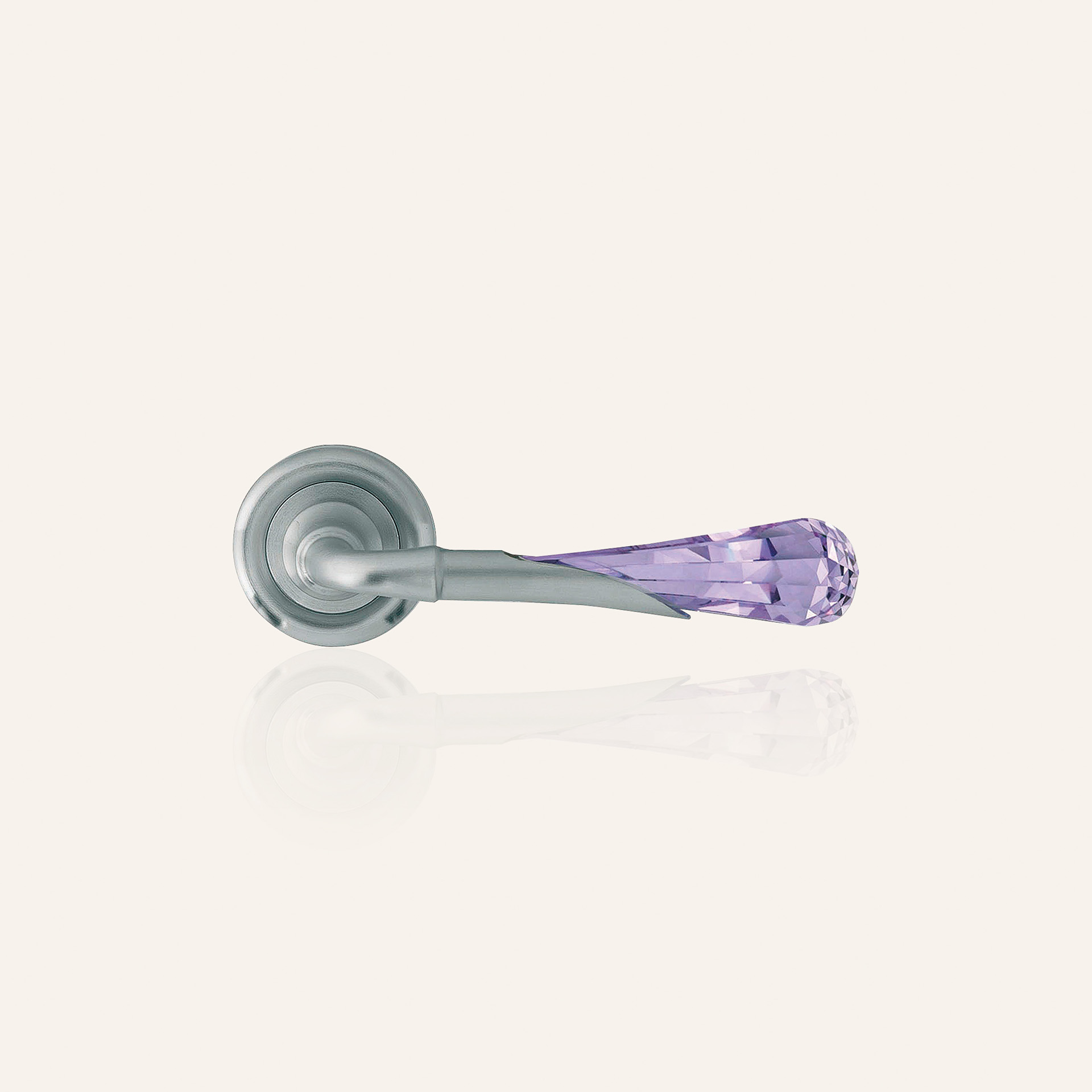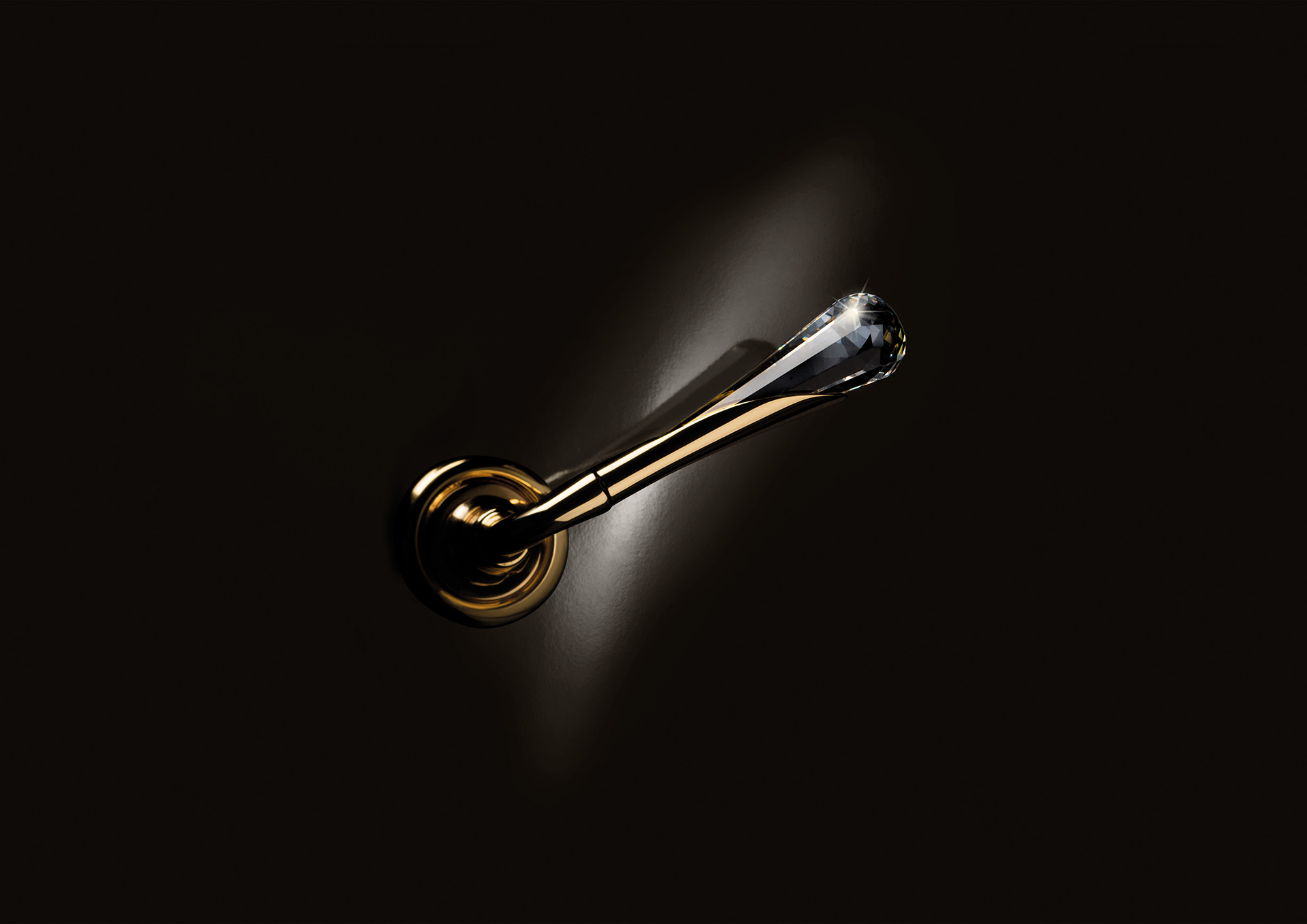 The design of this collection of handles is also timeless, where the slender stem of the handgrip is the perfect match for the elusive form of the Swarosvki? crystal and accompanies the gaze of its infinite reflections. The rose, soft and delicate, gracefully completes the silhouette of this handle.