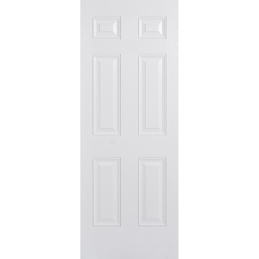 Crafted from a white GRP material, this Colonial 6P door is designed with four raised rectangular panels and two raised square ones.