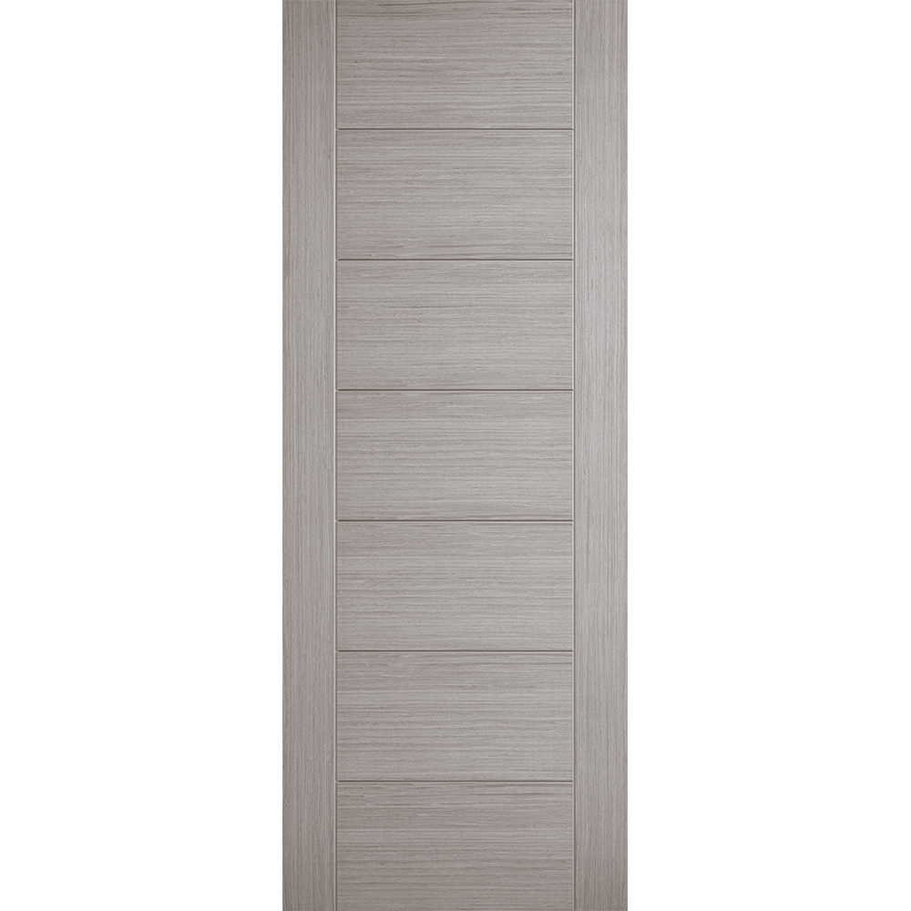 A ladder style design is created out of seven centre panels, all finished in a beautiful pre-finished Light Grey wood grain. NB: Standard doors supplied semi solid core. FD30’s supplied solid core.