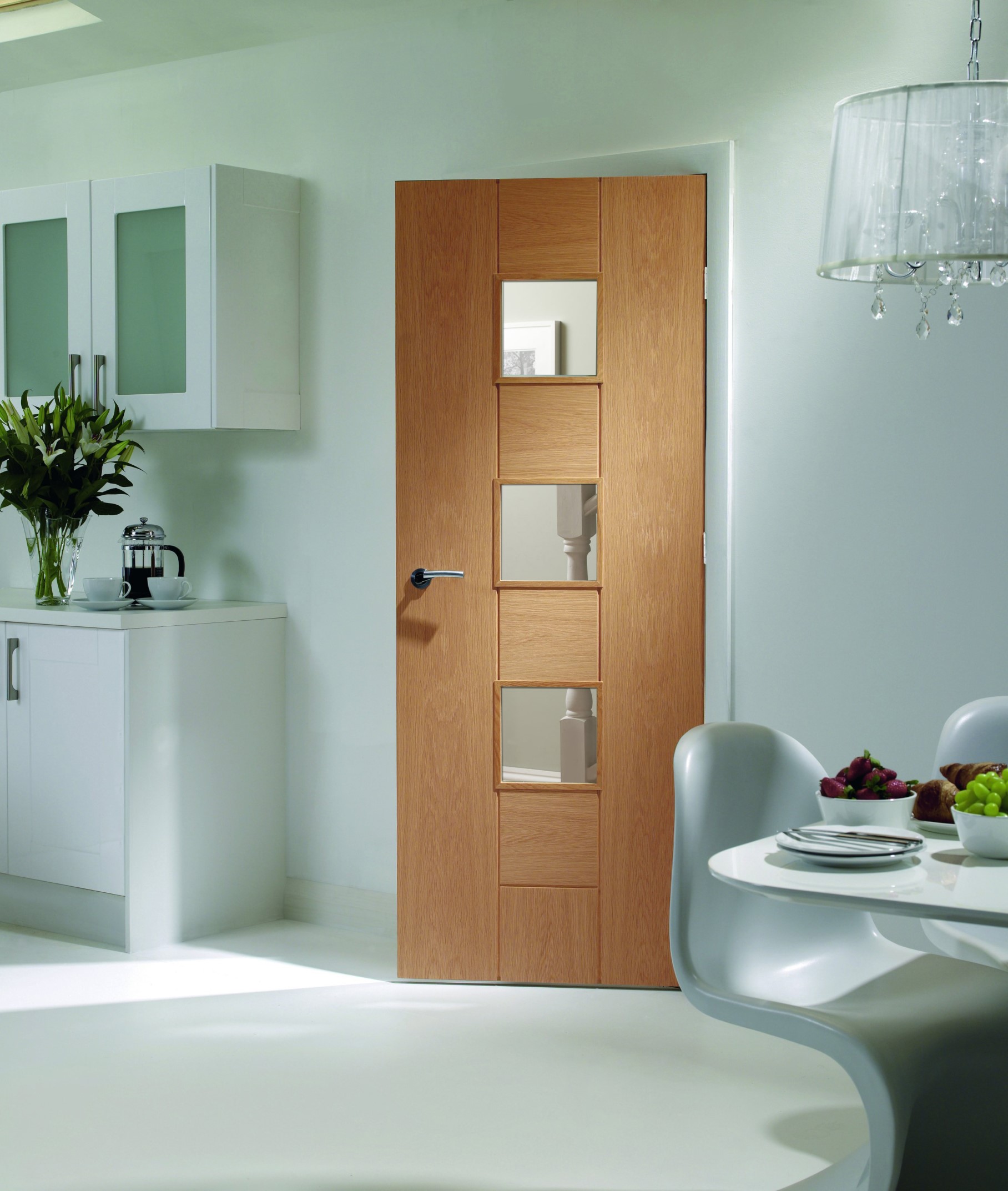The Pre-Finished Messina internal oak door is a contemporary horizontal and vertical grained panelled door with a 3 light design in clear glass. It is fully finished in a clear AC lacquer and is ready to hang with no treatment or fuss. This door would be equally at home in a modern apartment or a contemporary home setting. The Messina panelled door complements this range and allows for the mixing and matching of panelled and glazed doors.