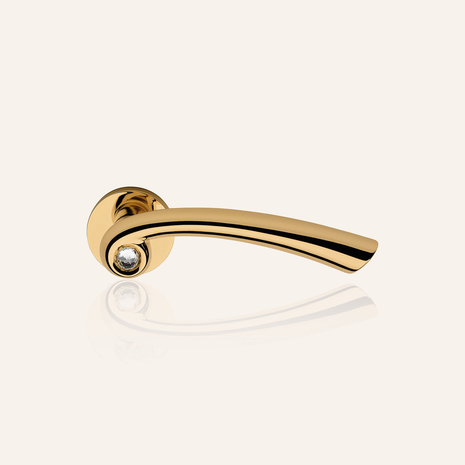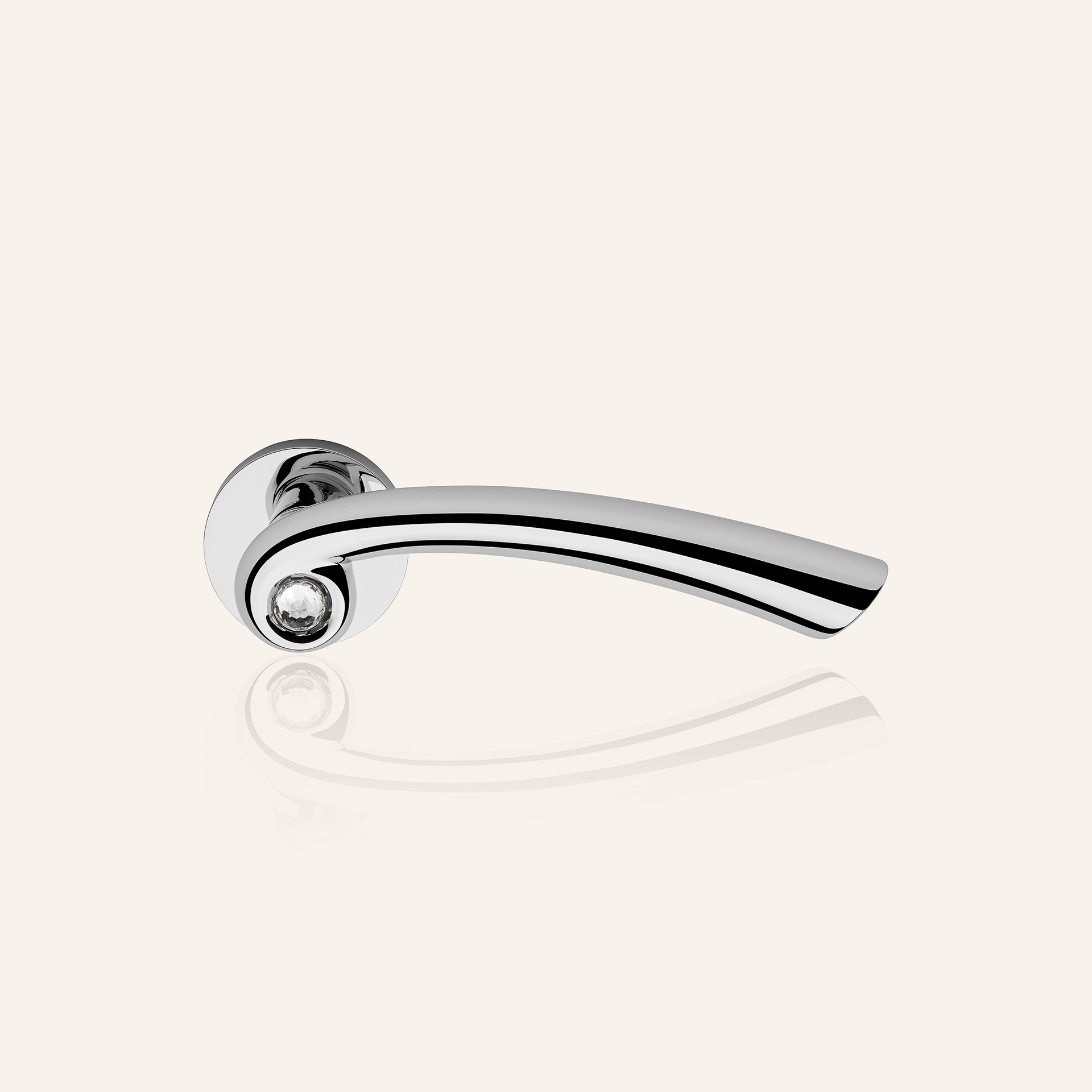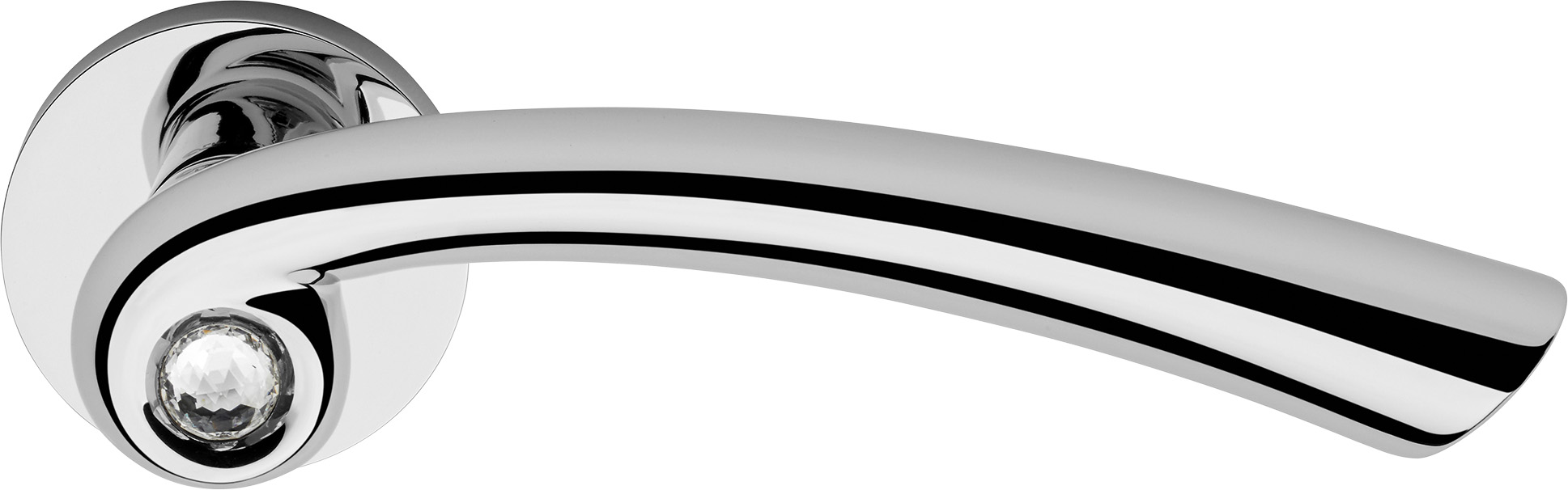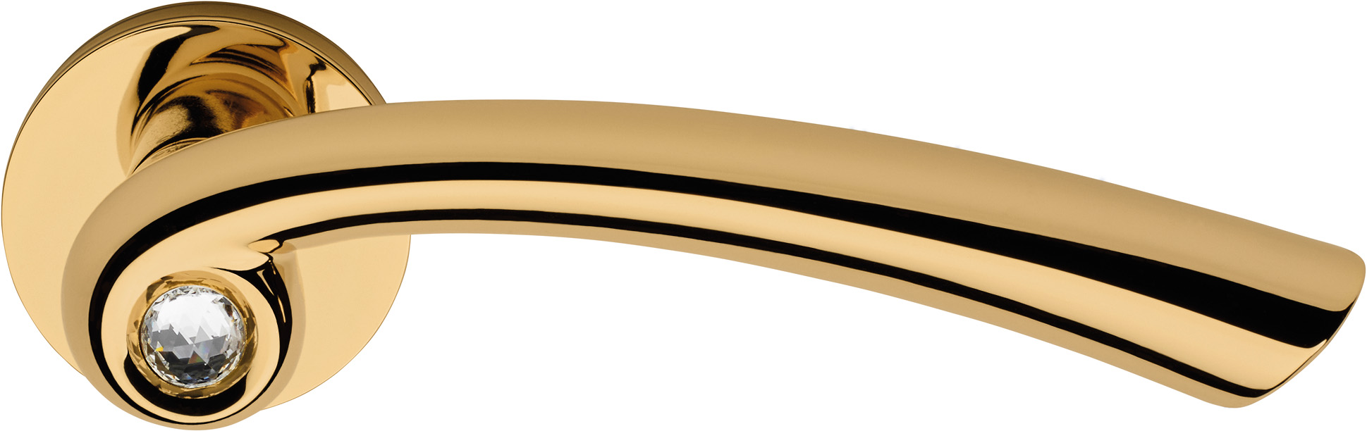The handgrip, characterised by a profile that makes it visually slimmer and gives it a safe grip, evolves around a precious Swarovski? crystal that releases reflections of? a thousand colours.