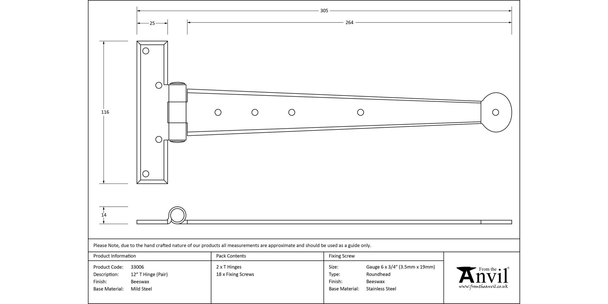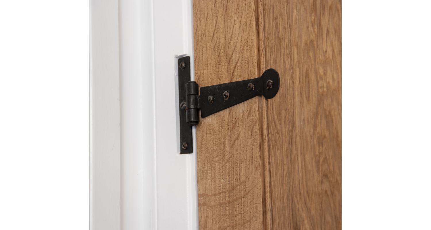 When opened a tee hinge has the appearance of a letter ‘T’. An alternative to butt hinges, tee hinges are usually used in conjunction with a suffolk latch on traditional plank doors.