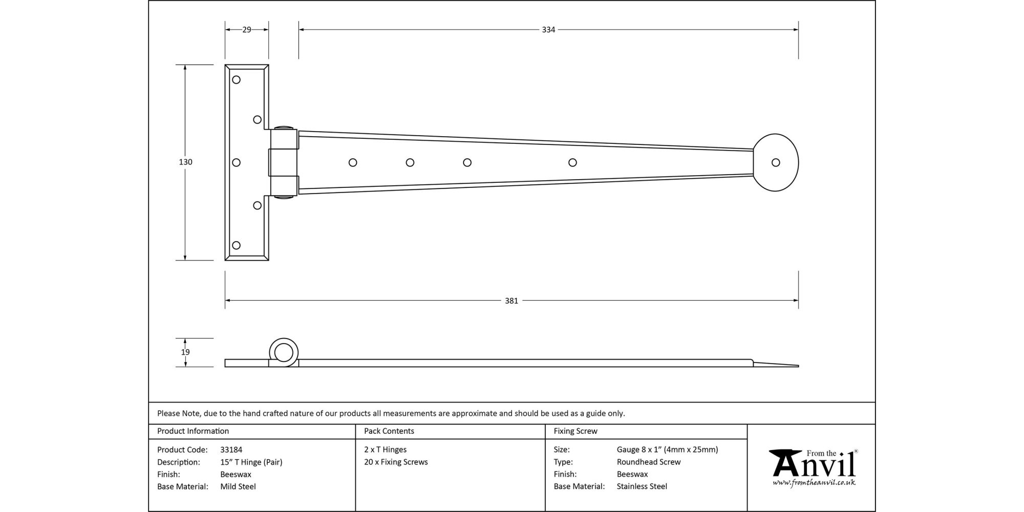 Complete with Matching Finish Roundhead Woodscrews
