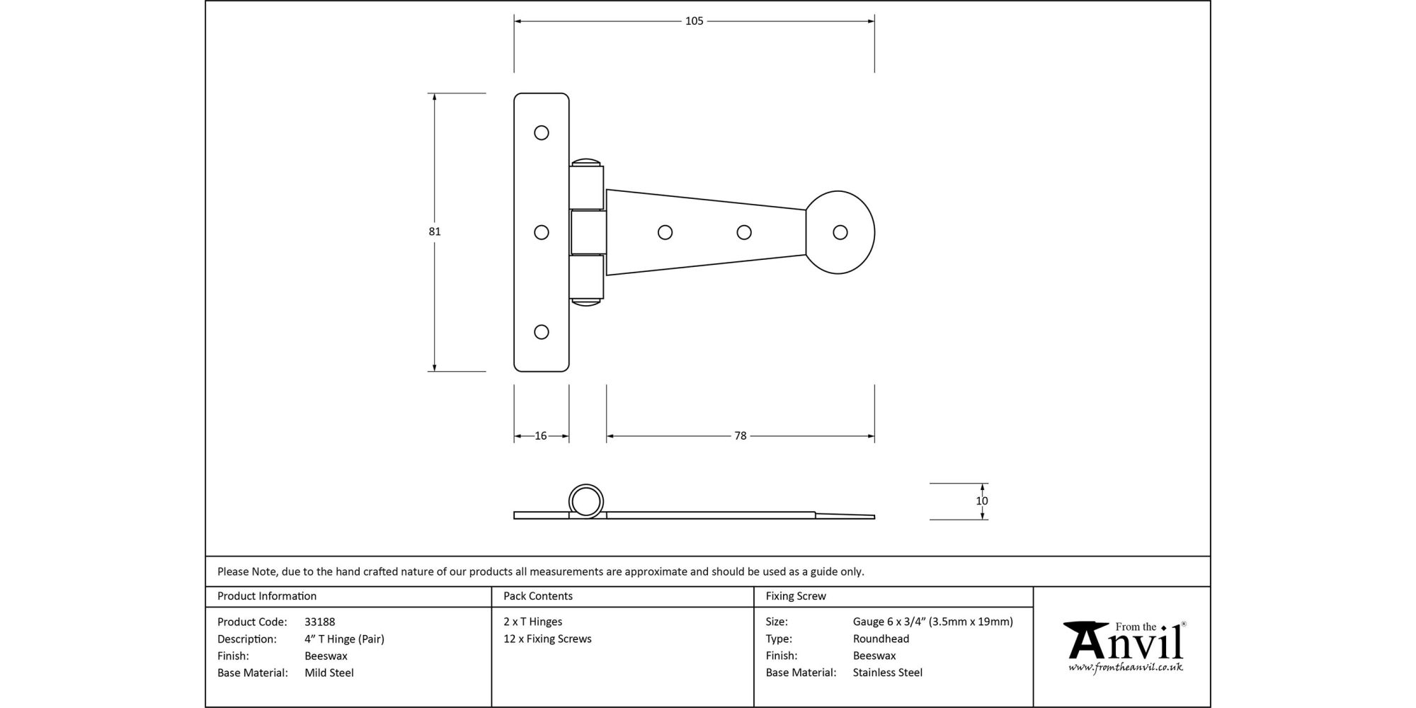 4″ Hinge – Overall Length: 102mm, Hinge Arm: 80mm, Fixing Plate: 82 x 16mm