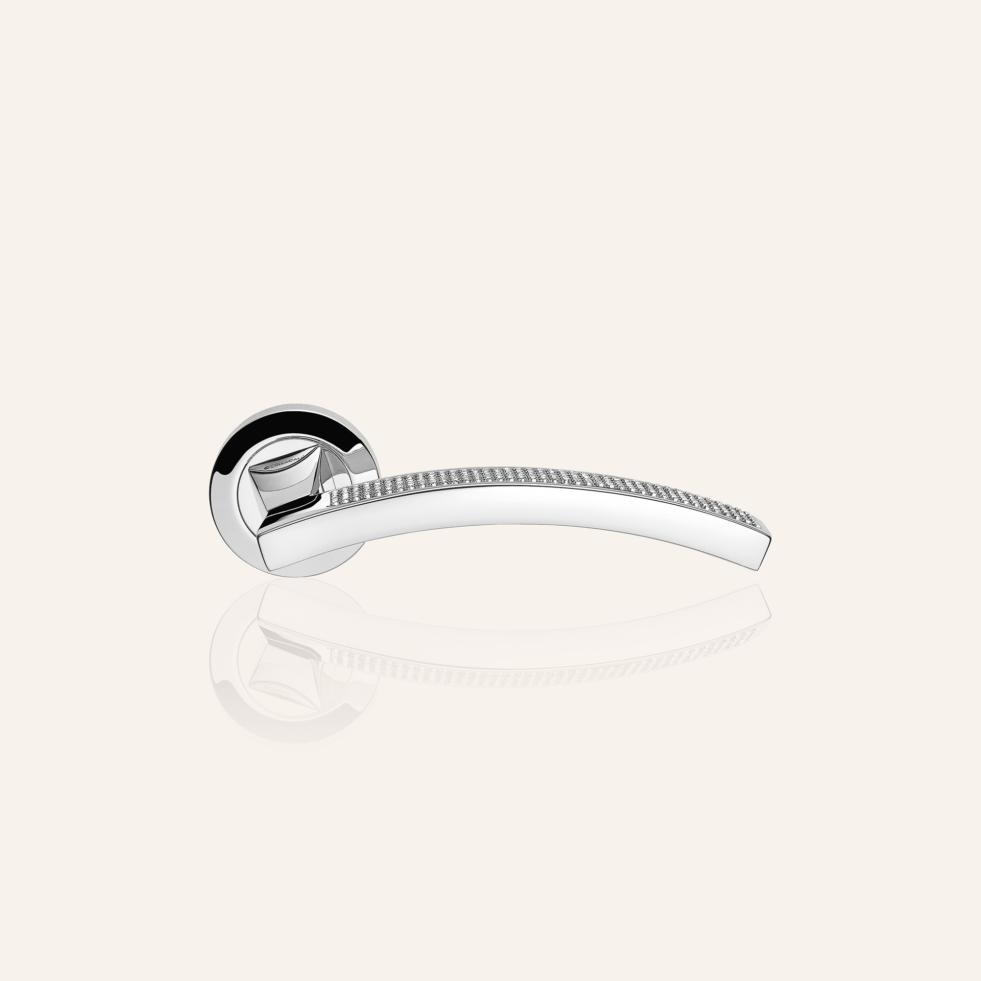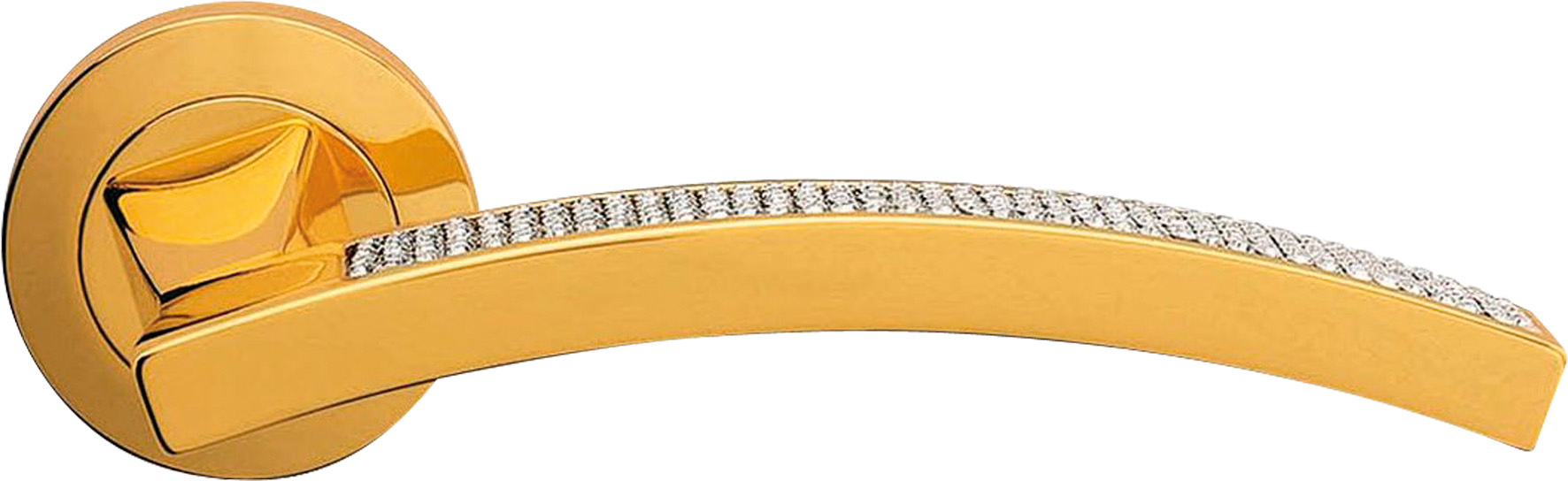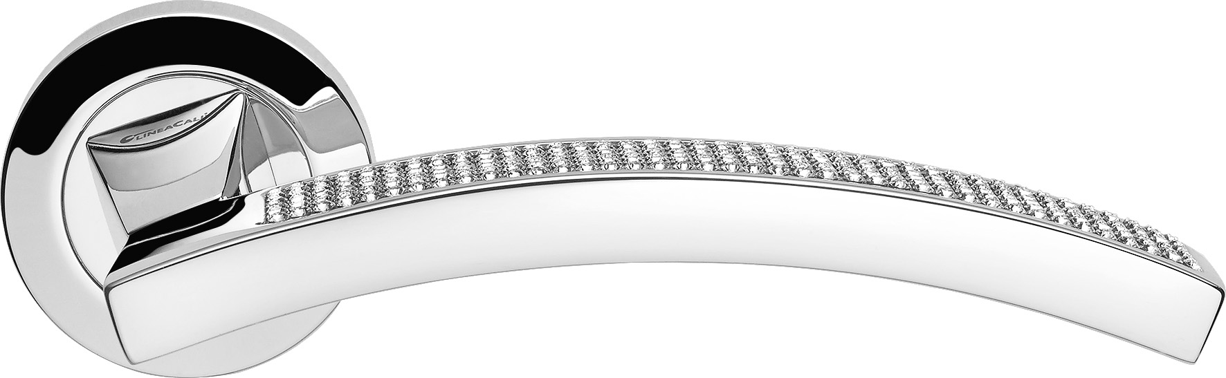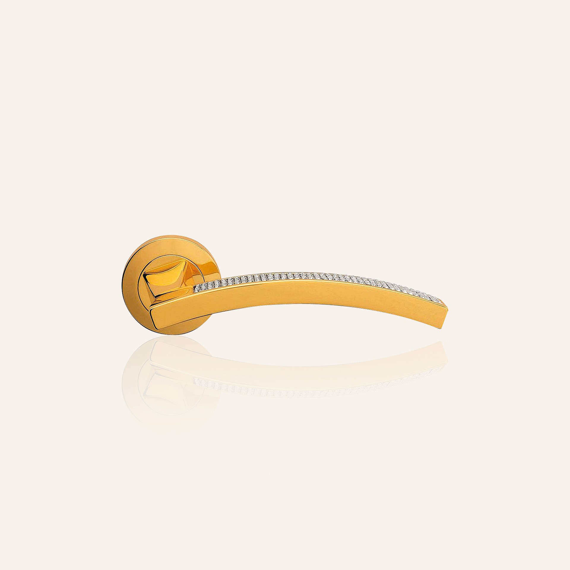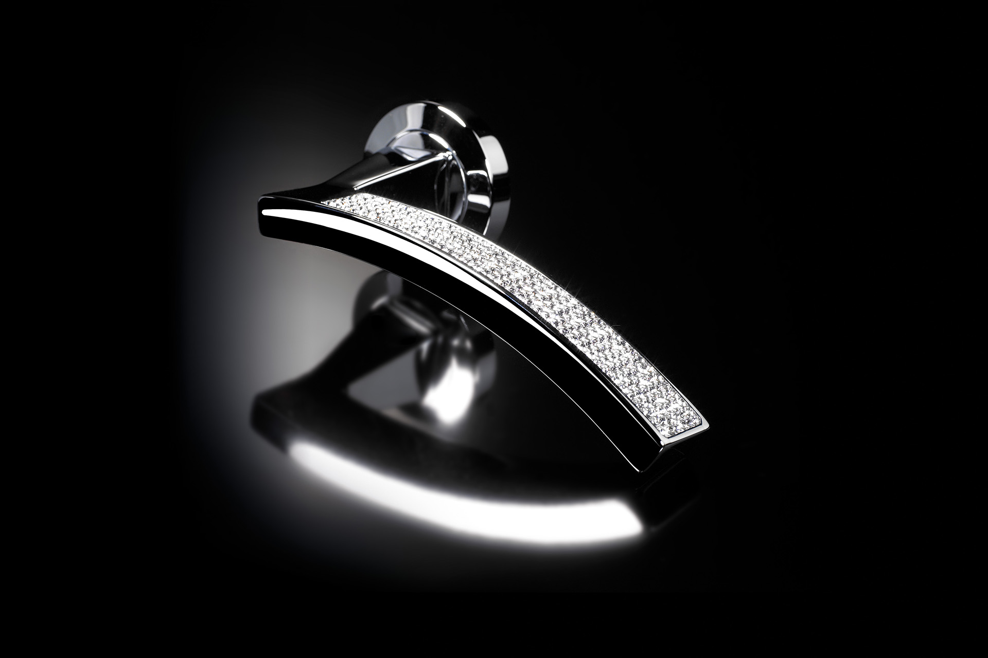 The hand that lightly touches the Swarovski? crystals pav? captures the light and reminds us of the intricate work of the goldsmith.