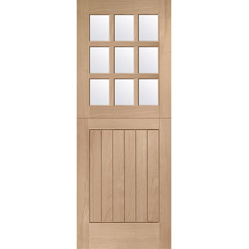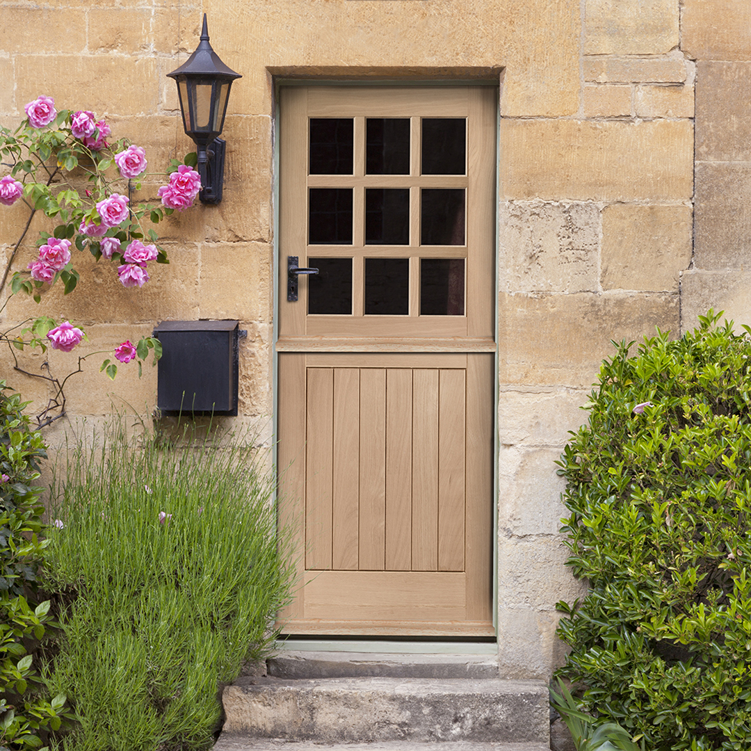 The Stable 9 light external door is a glazed oak 2 piece door based on the ever popular Suffolk with it’s boarded bottom section. A stable door allows for the opening of the top section of the door to allow light and air into a property whilst keeping the bottom section closed. The stunning nine light design is pre-glazed in clear glass allowing natural light to flow into the rear of a property.