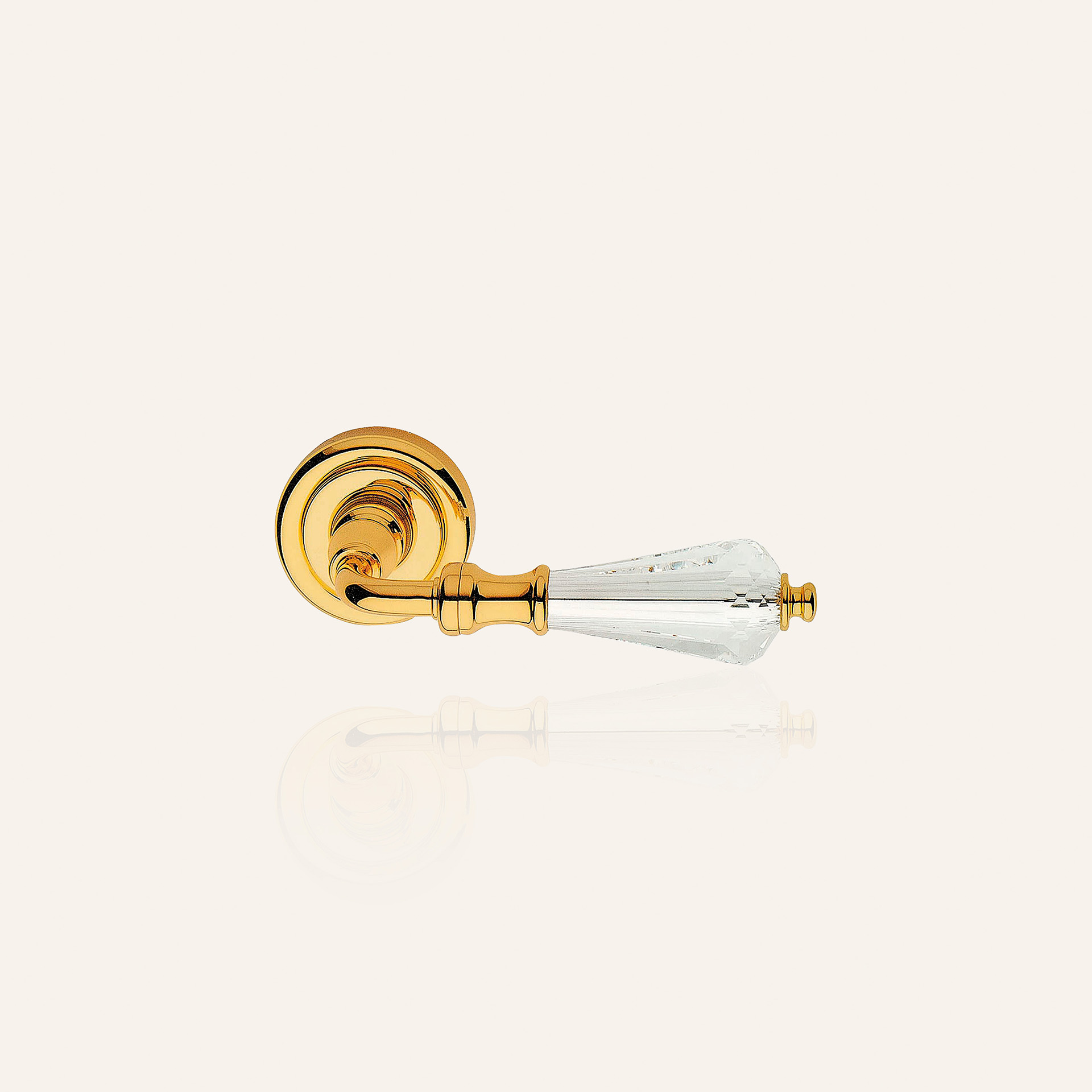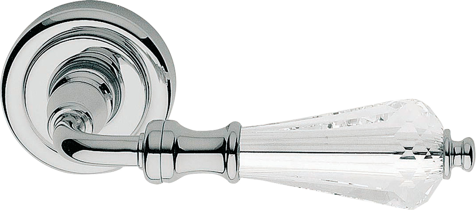 The stem is characterized by an elegant profile that leads the eye to the hourglass-shaped handgrip, a classical Italian handle, which, thanks to the Swarovski? crystal is transformed into a precious gem to be touched and admired. The skilful crafting of the crystal is clear at first glance, when the many facets shine and glow almost with their own light.
