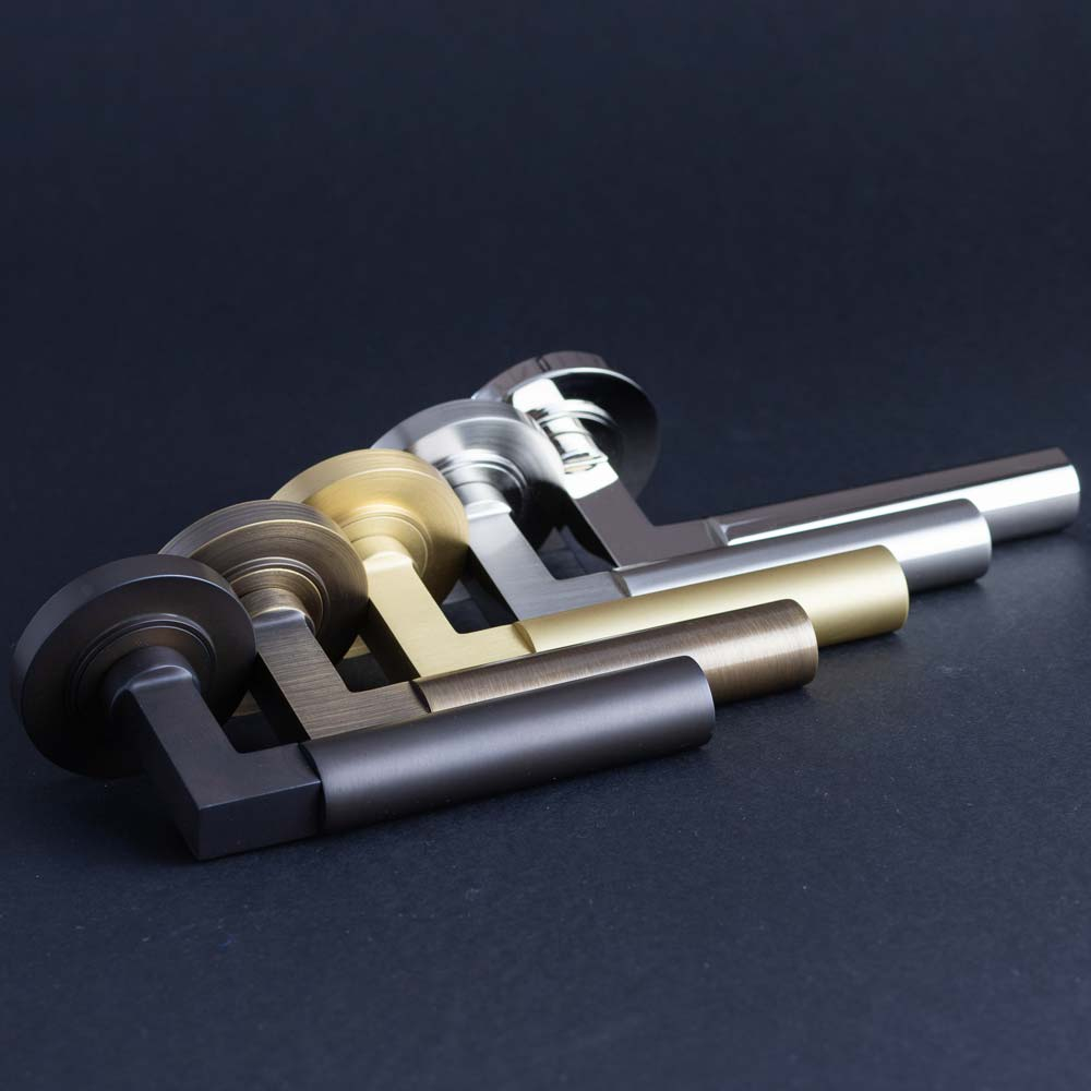 Our Westminster lever door handle on rose is a beautifully crafted handle made from solid brass. It features a unique blended square and cylindrical handle design set upon a stepped circular rose, adding a touch of sophistication to any door.